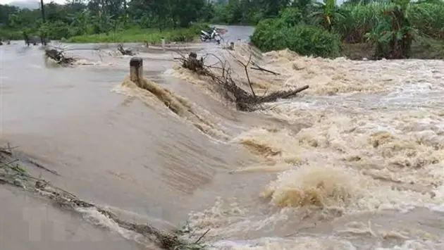 Từ ngày 8/9 đến ngày 9/9, mưa lớn khiến 2 người ở Tuyên Quang bị nước cuốn trôi, hiện vẫn đang mất tích; cầu Bình Thể - Tông Trang, xã Vinh Quang, huyện Chiêm Hóa, bị cuốn trôi.