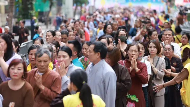 Hàng nghìn người đã đổ về chùa Quán Sứ, TP. Hà Nội để được chiêm bái xá lợi Phật, sáng 14/5.