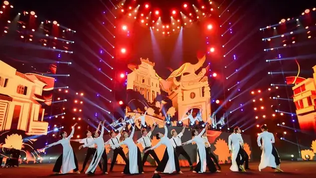 Mở màn “Hòa nhạc ánh sáng - Chào năm mới 2025” là phần trình diễn “Màu thời gian” gồm các tác phẩm âm nhạc từ lâu đã ghi dấu ấn trong lòng khán giả về Hà Nội, được hòa thanh phối khí pha chất dân gian đương đại.