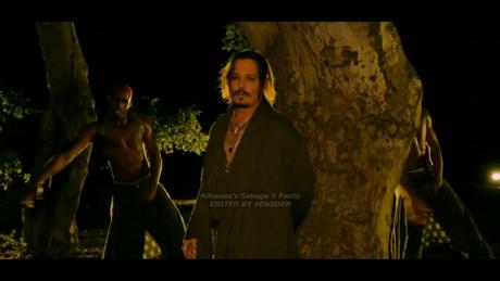 Buộc tóc đuôi ngựa, kẻ mắt đậm và đeo dây chuyền nhiều lớp, tài tử Cướp biển Caribbean đi ngang qua một khu rừng tối, bước chậm rãi và tiến đến ôm một cái cây. Rihanna nhận xét vị Johnny Depp trông rất "ngầu và sang trọng".