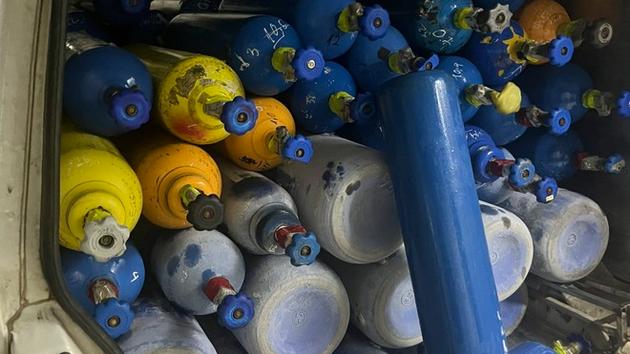 Tang vật thu giữ được gồm 41 bình có khối lượng là 12,5kg; 19 bình có khối lượng là 13 kg; 10 bình có khối lượng là 67,3kg/ bình. Tổng khối lượng khí N2O chứa trong 70 bình trên là 329 kg.