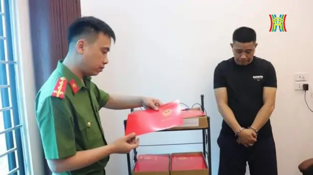 Trước đó, vào 13h ngày 28/5, tổ công tác Công an quận Nam Từ Liêm trong quá trình tuần tra kiểm soát trên địa bàn phường Xuân Phương phát hiện Nguyễn Duy Quang có biểu hiện nghi vấn nên đã kiểm tra và bắt quả tang đang giao hai bộ tài liệu trong đó có nhiều giấy tờ nghi vấn làm giả cho shipper đi vận chuyển.