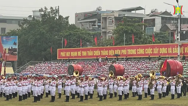 Lễ kỷ niệm bắt đầu với màn xếp hình nghệ thuật với chủ đề “Bản hùng ca Điện Biên” do các nghệ sĩ, chiến sĩ Đoàn nghi lễ quân đội biểu diễn; tiếp đó là màn trống hội với sự tham gia của 1.000 diễn viên là học viên của Học viện Cảnh sát Nhân dân cùng 400 chiếc trống đủ kích cỡ, đội cờ, đội múa rồng.