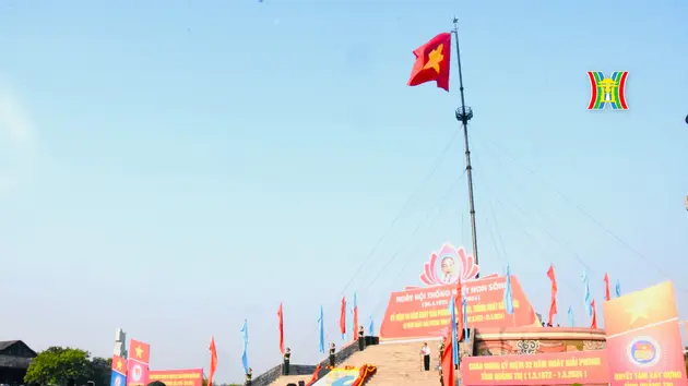 Trong không khí trang nghiêm, lá cờ đỏ sao vàng được kéo dần lên, tung bay trên Kỳ đài của Khu Di tích lịch sử Quốc gia đặc biệt Đôi bờ Hiền Lương - Bến Hải.