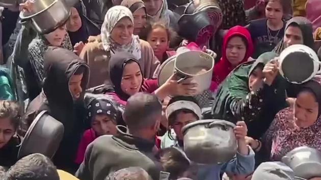 Người Palestine tại trại tị nạn Jabalia, Gaza, tập trung nhận thực phẩm miễn phí