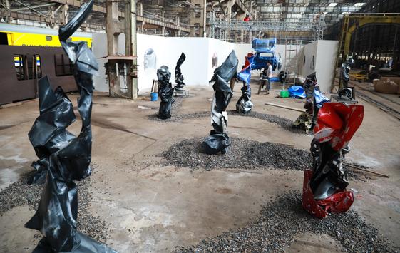 Trước ngày khai mạc Lễ hội Thiết kế sáng tạo Hà Nội 2023, các tác phẩm nghệ thuật tại Nhà máy xe lửa Gia Lâm đang được các nghệ sĩ gấp rút hoàn thiện những công đoạn cuối cùng.