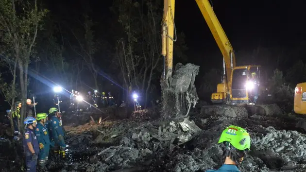 Công tác tìm kiếm cứu nạn diễn ra trong đêm. Ảnh Xinhua News