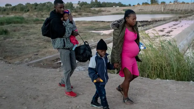 Một gia đình nhập cư Haiti di chuyển về phía biên giới Mỹ năm 2021 tại Yuma, Arizona.