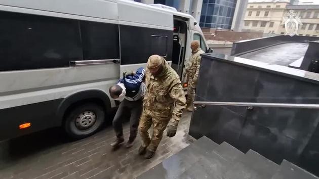 Sau đó, một số video ghi lại cảnh giam giữ và thẩm vấn những kẻ được cho là thủ phạm đã xuất hiện trên mạng. Hai trong số các video được tổng biên tập RT Margarita Simonyan đăng tải, một video khác do nhà báo Aleksandr Kots công bố. Kênh Mash Telegram đưa tin ít nhất một nghi phạm đã bị thương trong cuộc đối đầu với các nhân viên thực thi pháp luật và phải nhập viện. Các quan chức Nga chưa bình luận về thông tin một trong những nghi phạm phải nhập viện.