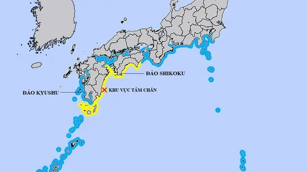 Đây là khuyến cáo đầu tiên mà cơ quan này đưa ra vài giờ sau trận động đất có độ lớn 7,1 ở vùng biển ngoài khơi tỉnh Miyazaki, trên rìa phía Tây của rảnh Nankai, làm rung chuyển khu vực Tây Nam Nhật Bản.
