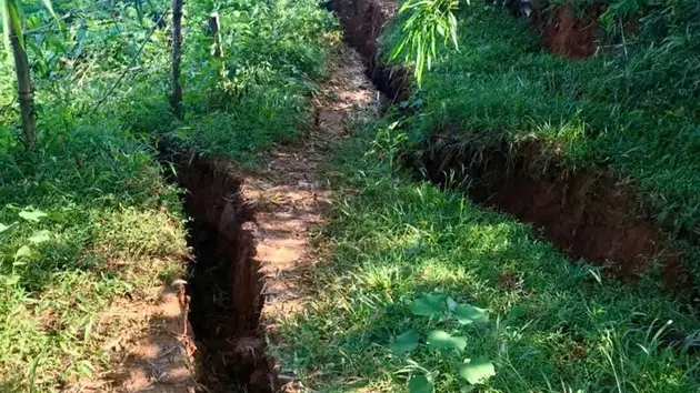 Tình trạng tương tự cũng diễn ra tại địa bàn xã Tuân Đạo, huyện Lạc Sơn. Trong các ngày từ 12 - 14/9, trên địa bàn xã Tuân Đạo có nhiều đợt mưa lớn kéo dài, đã xuất hiện nhiều vết nứt, sụt lún, có những vết sâu từ 2 - 3 m.