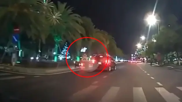 Theo camera hành trình của chiếc ô tô đi sau ghi lại, khoảng 19h30 ngày 22/4 trên đoạn đường trung tâm Nguyễn Tất Thành, thành phố Quy Nhơn xảy ra vụ va chạm mạnh giữa một ô tô và một xe máy.