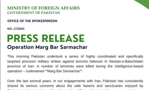 Trong một thông báo, Bộ Ngoại giao Pakistan cho biết “một số kẻ khủng bố đã bị tiêu diệt trong chiến dịch dựa trên thông tin tình báo”, đồng thời khẳng định rất “tôn trọng người dân Iran”.