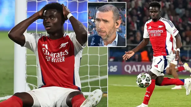 Saka ghi bàn gỡ 1-2 ở phút 76, sau khi Fabian Ruiz và Achraf Hakimi lần lượt lập công cho PSG ở phút 20 và 72. Tuy nhiên, ở phút 80, anh lại sút vọt xà từ cự ly gần sau đường chuyền của Riccardo Calafiori, dù thủ môn Gianluigi Donnarumma đã bất lực. Saka ôm đầu tiếc nuối và CĐV Arsenal tự hỏi, nếu đó là bàn thắng thì cục diện trận đấu sẽ thay đổi ra sao.