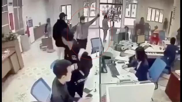 Thấy nhân viên ngân hàng có biểu hiện trì hoãn, kéo dài thời gian, đối tượng vượt qua tấm kính ngăn cách, nhảy lên bàn, vào bên trong quầy giao dịch và lấy đi một số tiền trước khi chạy ra ngoài tẩu thoát.