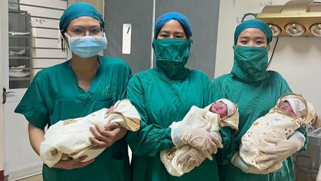 Bệnh viện đa khoa tỉnh Hà Tĩnh cho biết, các bác sĩ của bệnh viện này vừa mổ đẻ thành công cho sản phụ mang 3 thai tự nhiên cùng trứng rất hiếm gặp. Sản phụ và 3 bé sơ sinh đều khỏe mạnh và đang được theo dõi, chăm sóc tại bệnh viện.