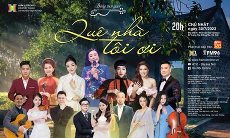 Với chủ đề 'Quê nhà tôi ơi', chương trình nghệ thuật 'Dòng thời gian - Bài ca đi cùng năm tháng' số 5, được phát sóng trực tiếp trên kênh 1, FM 96 và các nền tảng số của Đài PT-TH Hà Nội vào 20h00 ngày 30/07. Chương trình sẽ đưa quý khán giả trở về với những ký ức tuổi thơ, quê hương yêu dấu, qua những ca khúc nổi tiếng với sự thể hiện của những ngôi sao tên tuổi trong làng nhạc nhẹ Việt Nam.