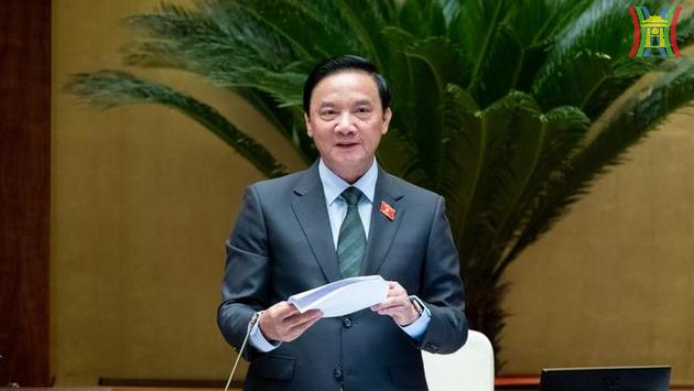 Điều hành nội dung phiên họp, Phó Chủ tịch Quốc hội Nguyễn Khắc Định cho biết, tiếp tục chương trình Kỳ họp thứ 6, Quốc hội tiến hành thảo luận ở hội trường về dự án Luật Tổ chức Tòa án nhân dân (sửa đổi).