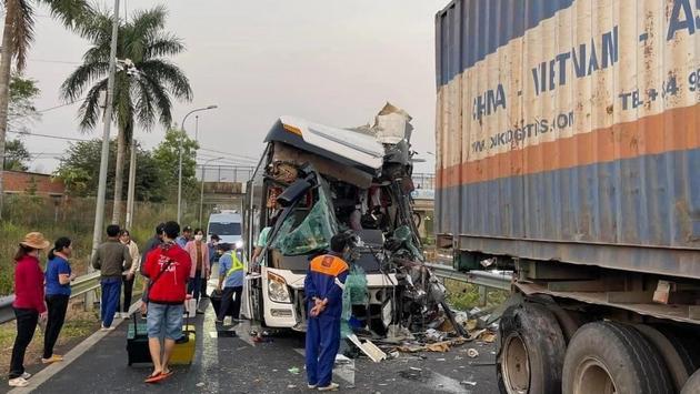 Cú va chạm mạnh khiến chiếc xe khách bị biến dạng hoàn toàn phần đầu. Tài xế điều khiển xe khách bị thương nặng được đưa đi cấp cứu ngay sau đó. Nhưng do vết thương quá nặng nên đã tử vong tại bệnh viện đa khoa khu vực Long Thành.