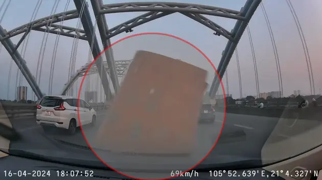 Sự việc được camera hành trình của một chiếc ô tô ghi lại khi lưu thông qua cầu Đông Trù hôm 16/4. Thời điểm trên, xe ô tô có camera hành trình đang di chuyển với tốc độ khoảng 50km/h, thì có một tấm bìa từ thùng xe tải chạy phía trước bay đến, che kín kính lái. Rất may mắn, tấm bìa đã rơi xuống sau vài giây và không có tai nạn đáng tiếc xảy ra.