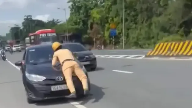 Khi lực lượng cảnh sát giao thông ra tín hiệu yêu cầu dừng xe để kiểm tra, tài xế đã tăng ga bỏ chạy, hất một chiến sĩ cảnh sát giao thông lên nắp capo của xe.