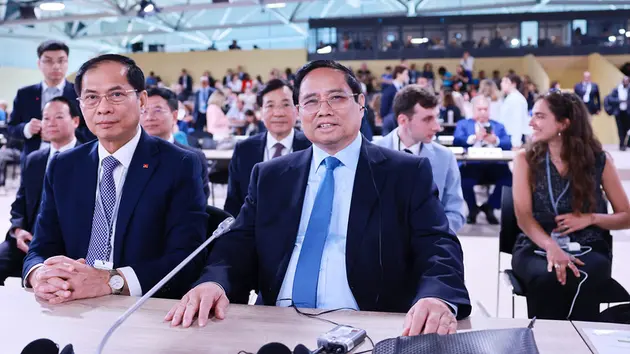 Cùng tham dự với Thủ tướng có Phó Thủ tướng, Bộ trưởng Bộ Ngoại giao Bùi Thanh Sơn, các thành viên đoàn đại biểu cấp cao Việt Nam.