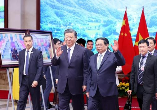 Sáng 13/12/2023, tại Trụ sở Chính phủ, Thủ tướng Phạm Minh Chính và Tổng Bí thư Ban Chấp hành Trung ương Đảng Cộng sản Trung Quốc, Chủ tịch nước Cộng hòa Nhân dân Trung Hoa Tập Cận Bình tham quan trưng bày những hình ảnh tiêu biểu về quan hệ Việt - Trung, do Thông tấn xã Việt Nam thực hiện.