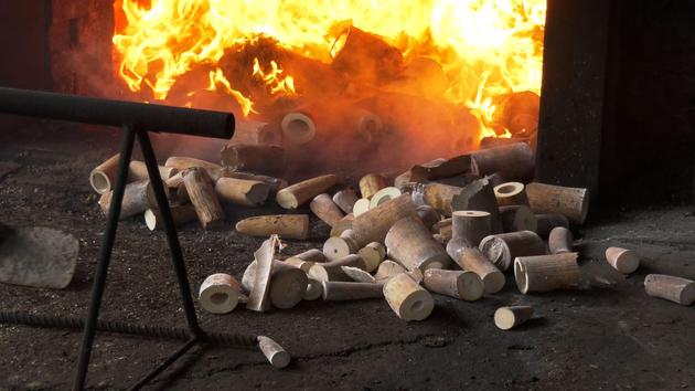 Gần 10 tấn động vật hoang dã gồm ngà voi, sừng tê giác, vảy tê tê… với giá trị ước tính 300 tỷ đồng đã bị tiêu hủy.