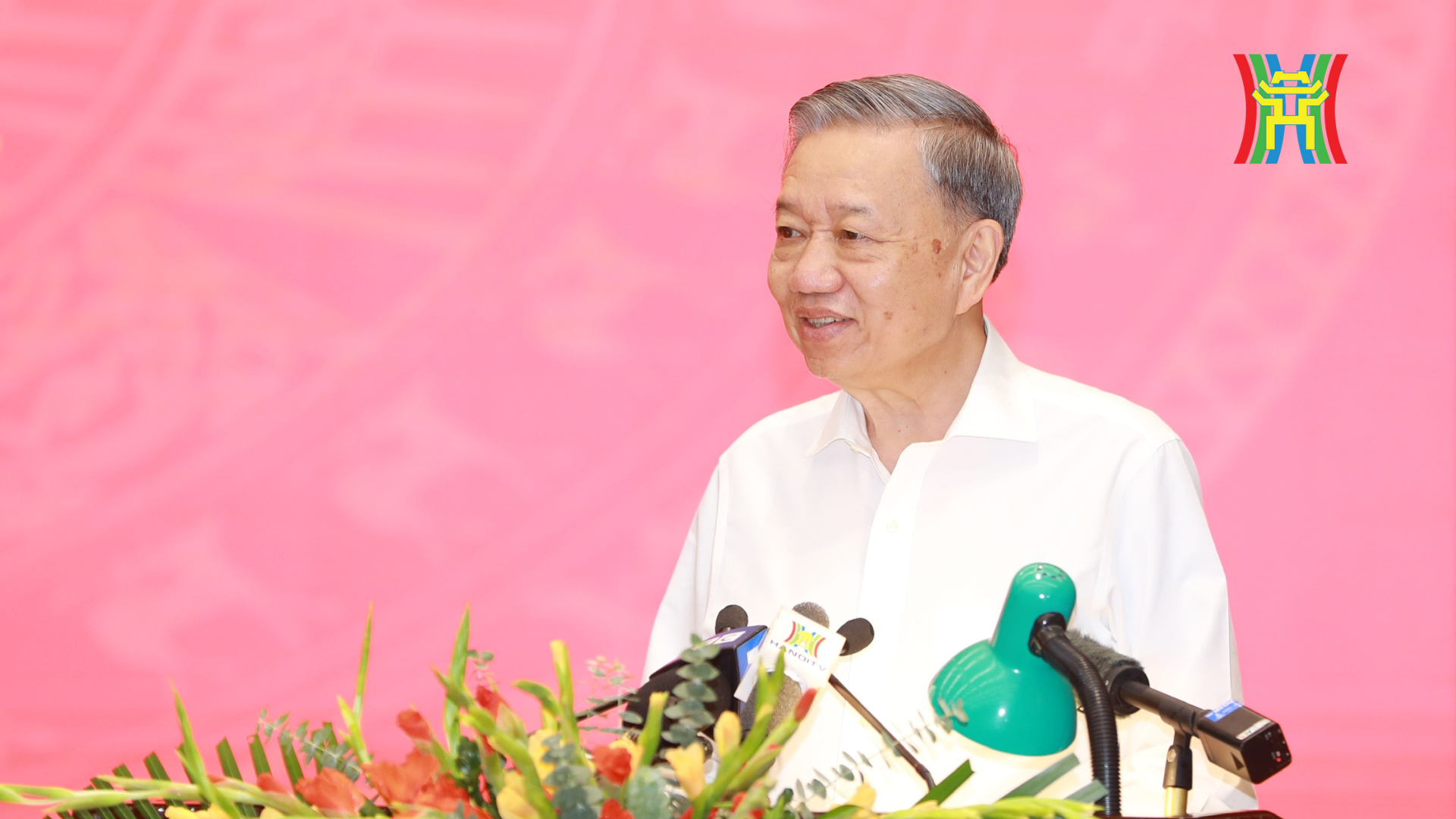 Tổng Bí thư, Chủ tịch nước Tô Lâm tin tưởng và mong rằng trong thời gian tới, với bản lĩnh chính trị, trí tuệ, truyền thống cách mạng, khát vọng phát triển và quyết tâm mới, khí thế mới, sức làm việc năng động, sáng tạo, Thủ đô ngày càng phát triển, giàu đẹp, văn minh, nhân dân ngày càng có cuộc sống ấm no, vui tươi, hạnh phúc, xứng danh là “Thủ đô của lương tri và phẩm giá con người”, “Thành phố Sáng tạo”, “Thành phố Vì hòa bình”.