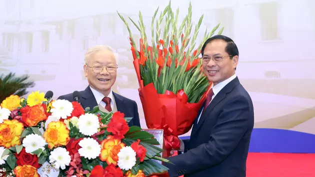 Bộ trưởng Ngoại giao Bùi Thanh Sơn: Trong gần 15 năm qua, trên cương vị Tổng Bí thư, đồng chí Nguyễn Phú Trọng đã trực tiếp tham dự vào nhiều hoạt động đối ngoại, có nhiều cuộc gặp gỡ, tiếp xúc mang dấu ấn lịch sử, không chỉ mở ra những chương mới trong quan hệ song phương với các nước mà còn tạo dựng thế chiến lược thuận lợi của ta trong cục diện quốc tế.