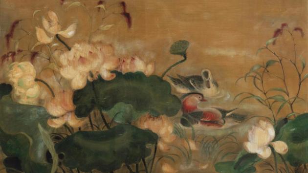 Bức tranh lụa "Uyên ương hý liên" của Lê Phổ với mức giá ngoài dự kiến, may mắn lọt top 10 kỷ lục tranh Việt.