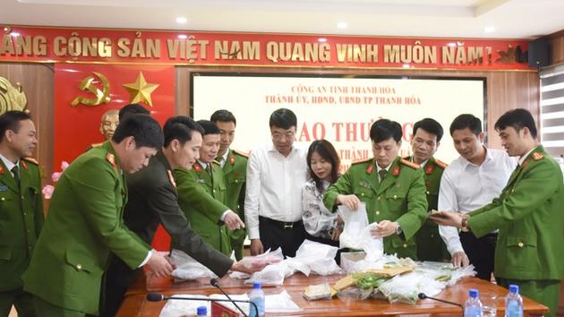 Trước đó, qua tổ chức lực lượng điều tra phòng chống tội phạm ma tuý, ngày 19/2, Công an thành phố Thanh Hoá đã bắt quả tang các đối tượng, thu giữ 8kg ma tuý.