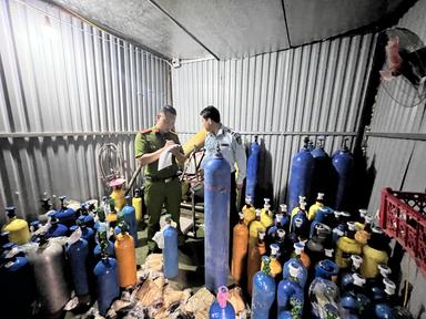 Tại thời điểm kiểm tra kho hàng, lực lượng chức năng đã phát hiện Nguyễn Văn Tính (SN 06/08/1992; HKTT tại xã Phượng Vĩ, huyện Cẩm Khê, tỉnh Phú Thọ) đang tiến hành “sang chiết” các bình khí N2O, từ bình loại to 20kg sang các bình loại nhỏ 5kg, 10kg và 15kg. Đồng thời thu giữ tại chỗ 109 bình khí N2O các loại, trong đó có 9 bình loại 20kg và 100 bình loại 5kg,10kg và 15kg.