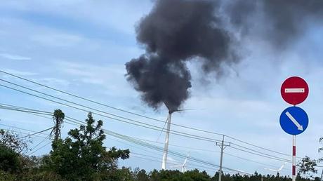 Tuabin điện gió bốc cháy dữ dội ở Bình Thuận