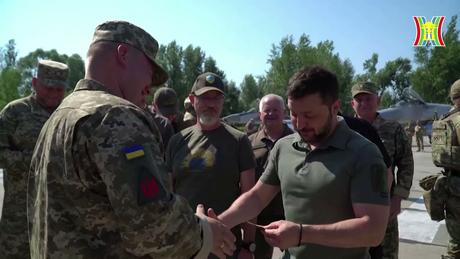 Tổng thống Ukraine Volodymyr Zelenskiy ngày 6/8 đã đến thăm một sân bay tại một địa điểm bí mật để chúc mừng các nam nữ phi công nhân Ngày lực lượng không quân Ukraine.