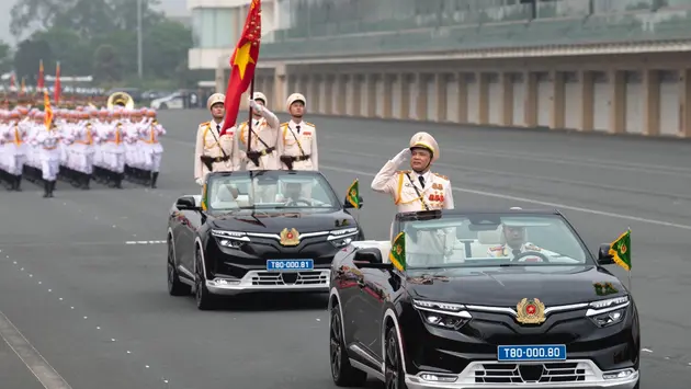 Tại lễ diễu binh kỉ niệm 50 năm ngày truyền thống lực lượng Cảnh sát cơ động Việt Nam được tổ chức vào sáng 14/4 tại Hà Nội. Bên cạnh dàn xe đặc chủng hiện đại, mạnh mẽ, sự quan tâm của cộng đồng yêu phương tiện còn dành sự quan tâm đến hai chiếc xe đi đầu trong buổi lễ, đó là mẫu Vinfast VF8 phiên bản mui trần
