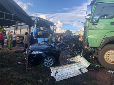 Chiếc xe con đã bị một xe tải cùng chiều đâm thẳng vào đuôi xe. Sau đó xe tải dồn tới khiến xe con mất kiểm soát rồi bị đẩy sang làn đường ngược chiều tiếp tục tông vào xe tải BKS 47C-263.06 đang lưu thông.
