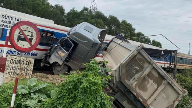 Theo đó, vào khoảng 12h30p, tàu SE8 có số hiệu đầu máy D19E – 921, thuộc xí nghiệp đầu máy Hà Nội, do lái tàu sinh năm 1976 điều khiển, chạy theo hướng Vinh – Hà Nội đã va chạm với xe ô tô đầu kéo đang chở cát mang BKS: 37H-05676, kéo theo rơ moóc 37R-04739.