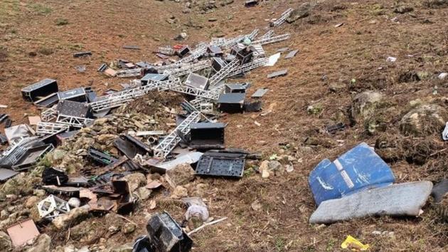 Tại hiện trường, chiếc xe hư hỏng hoàn toàn, mảnh vỡ nằm vương vãi trên sườn núi. Nhiều trang thiết bị tổ chức sự kiện, tăng âm, loa đài bị hư hỏng nặng.