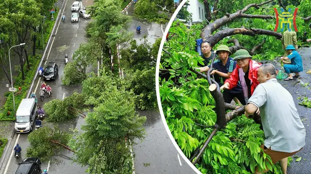 Xử lý cây xanh gãy đổ tại Hà Nội sau bão Yagi